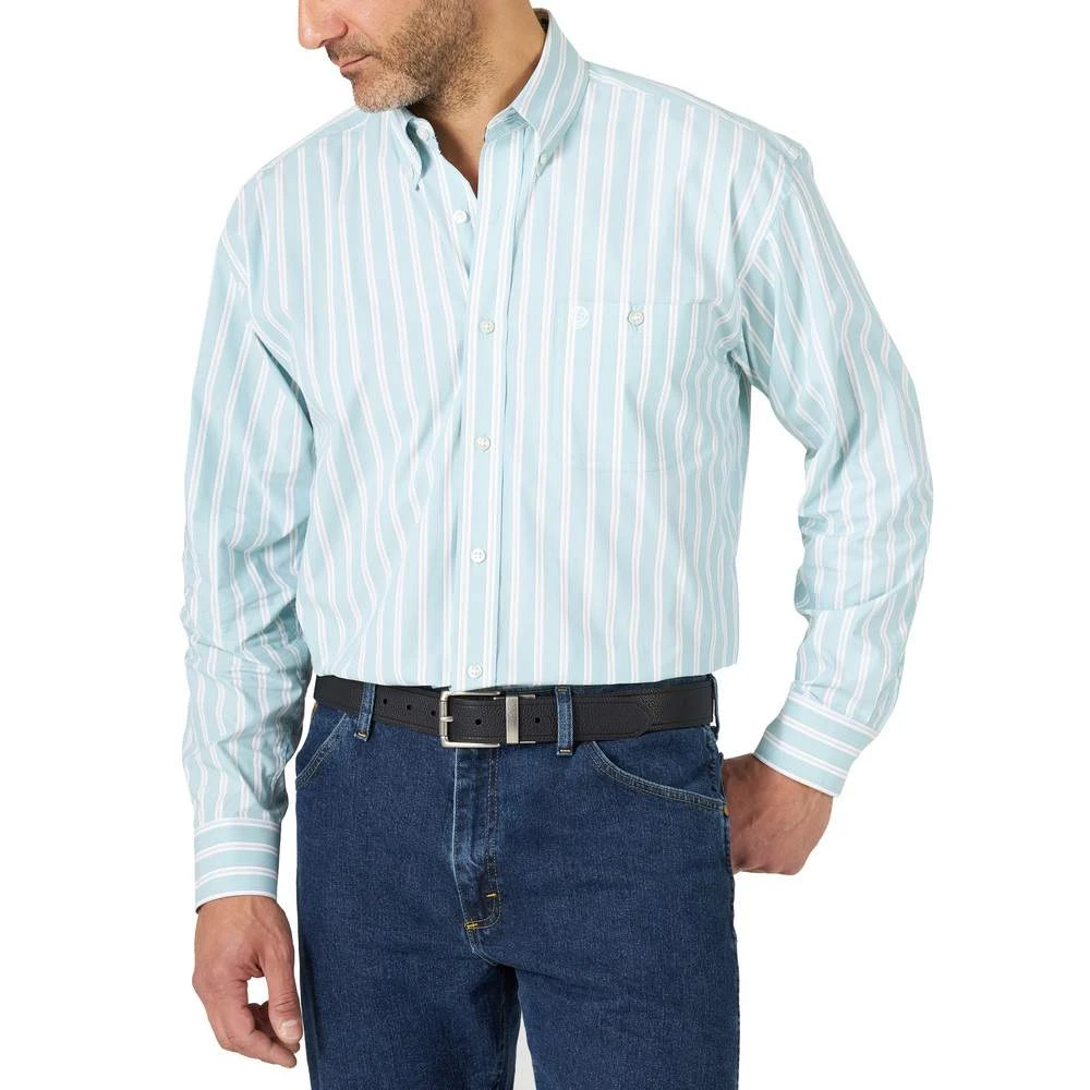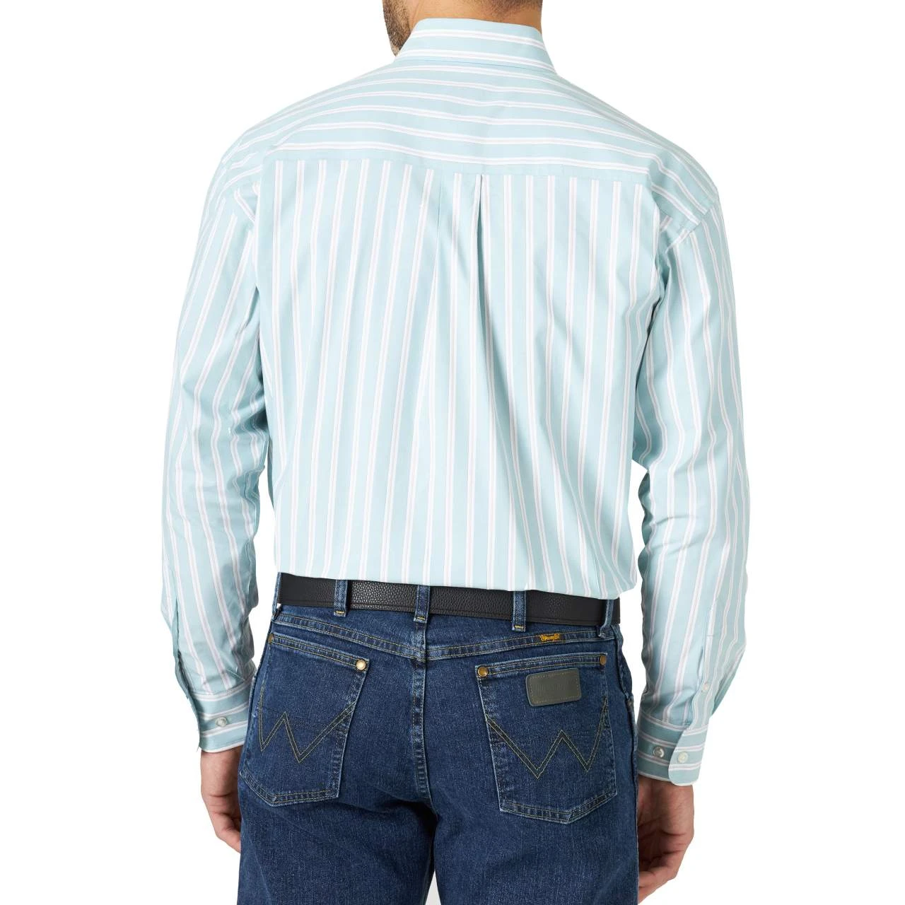 Step out in style wearing our George Strait, sea blue striped buttondown by Wrangler.