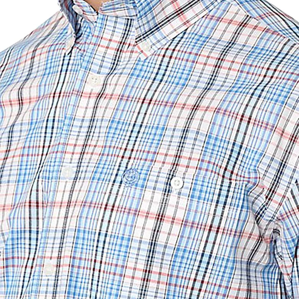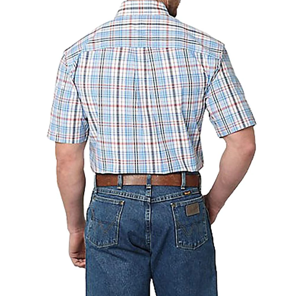 Keep it simple with the classic profile of this short sleeve button-down shirt. Part of the George Strait collection, this shirt is full of the timeless style the king of country is known for. Its ¼ turned hem tails, straight back yoke with box pleat, and chest pocket add subtle detailing for a stylish look you’ll love. The classic plaids finish it off with a style that pairs perfectly with your Wrangler® denim.