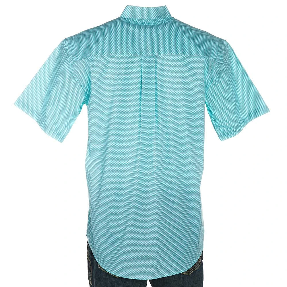 Go for a casual look wearing our turquoise triangle printed buttondown by Wrangler George Strait.