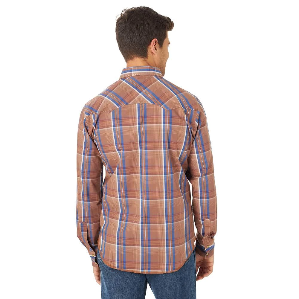 Serving that classic Wrangler® style at its best, this men’s long-sleeve fashion western snap plaid shirt comes with all the distinctive details you know and love. It features rancher’s crease styling in the front, a pointed front yoke, a sawtooth-inspired back yoke, two snap cuffs, double snap flap pockets at the chest, and a curved hem for versatility. It’s made of cotton to keep you comfortable all year long and it features a modern fit. You can leave it untucked or tuck it into your favorite Wrangler jeans, with a t-shirt underneath if you feel like layering.