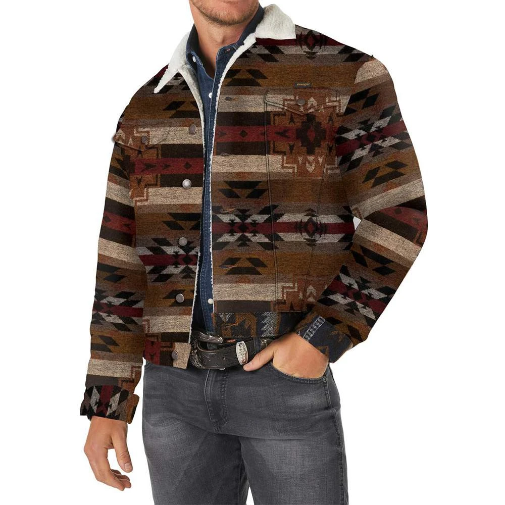 - Men’s Pecan Pie Aztec Jacquard Sherpa Lined Jacket