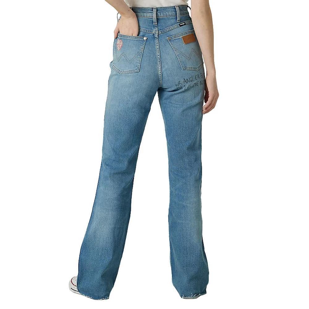Destination? Due west, with two of the biggest names in style and sound. Wrangler® and Fender® pair up in an epic collaboration to celebrate 75 years of rock star status. One of your favorite jeans from the women’s Wrangler Heritage collection gets the full Fender treatment, complete with vintage-inspired patches, subtle distressing, and scribbling to commemorate the occasion from front to back. This bootcut is easy on the eyes and your figure, with a flattering high-rise waist, a fitted seat, a slim leg from thigh to knee, and a dramatic leg opening that will help you show off your favorite boots or heels. Plus, it’s crafted from a comfy cotton blend with a little stretch. It comes with all the iconic details you love, including our five-pocket styling and ‘W’ embroidery. Plus, you’ll find a hidden pocket just for your lucky guitar pick.